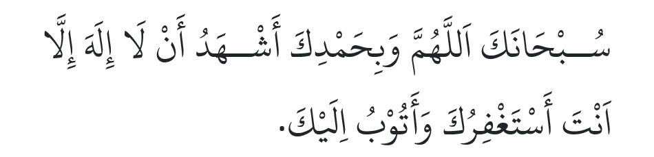 bahawa tiada Tuhan selain Allah, aku mohon ampun dan bertaubat pada-Mu.